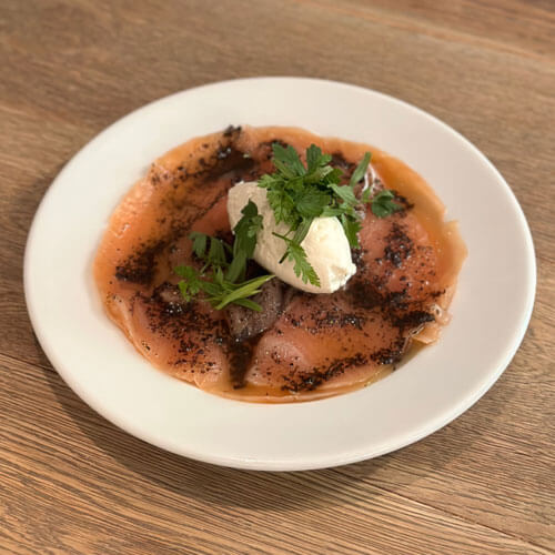 サーモン、トリュフドレッシング、ホースラディッシュクリーム