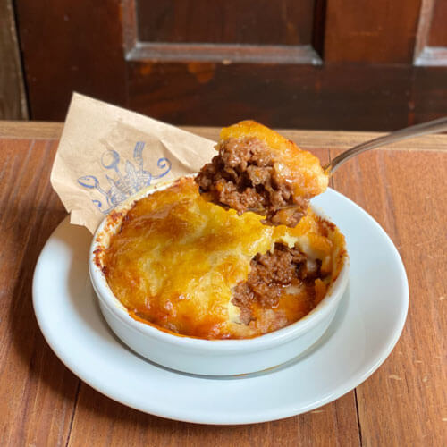 牛肉のミートソース、マッシュポテトのオーブン焼き