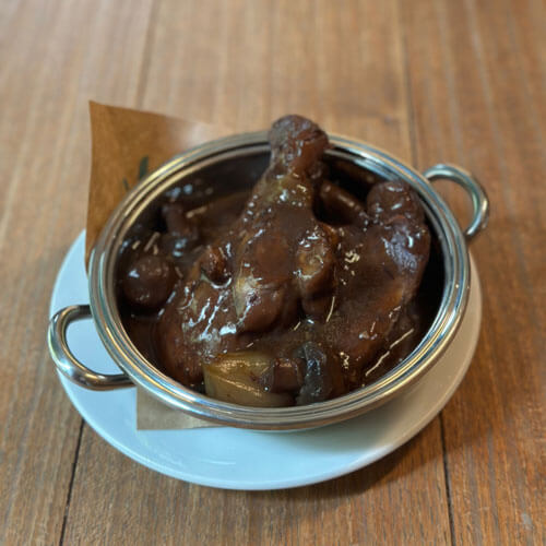 鶏の赤ワイン煮、ベーコン、マッシュルーム、ペコロス